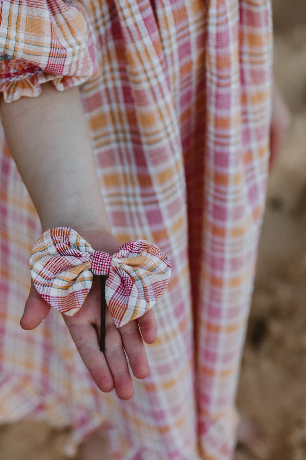 The dresses are ready to be given as gifts, with a complimentary matching bow for her hair and packaged in a matching drawstring bag.