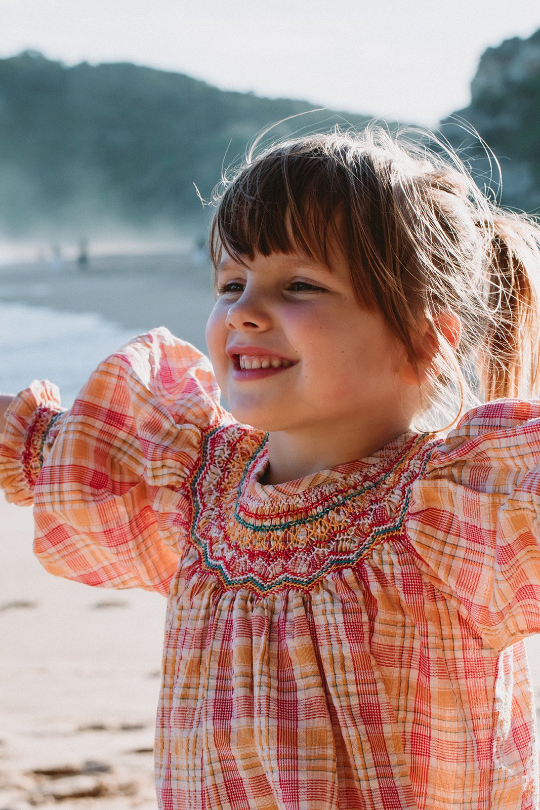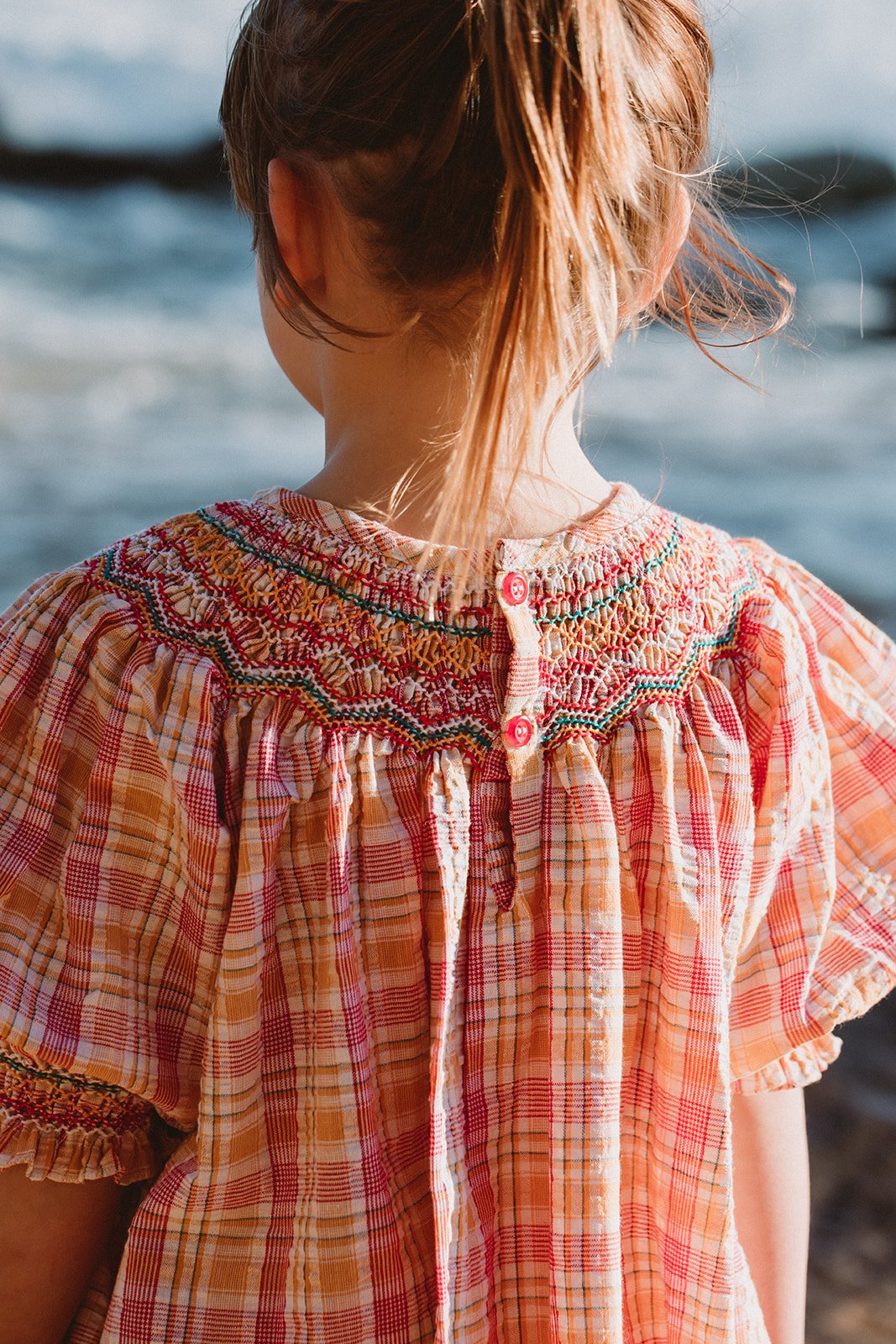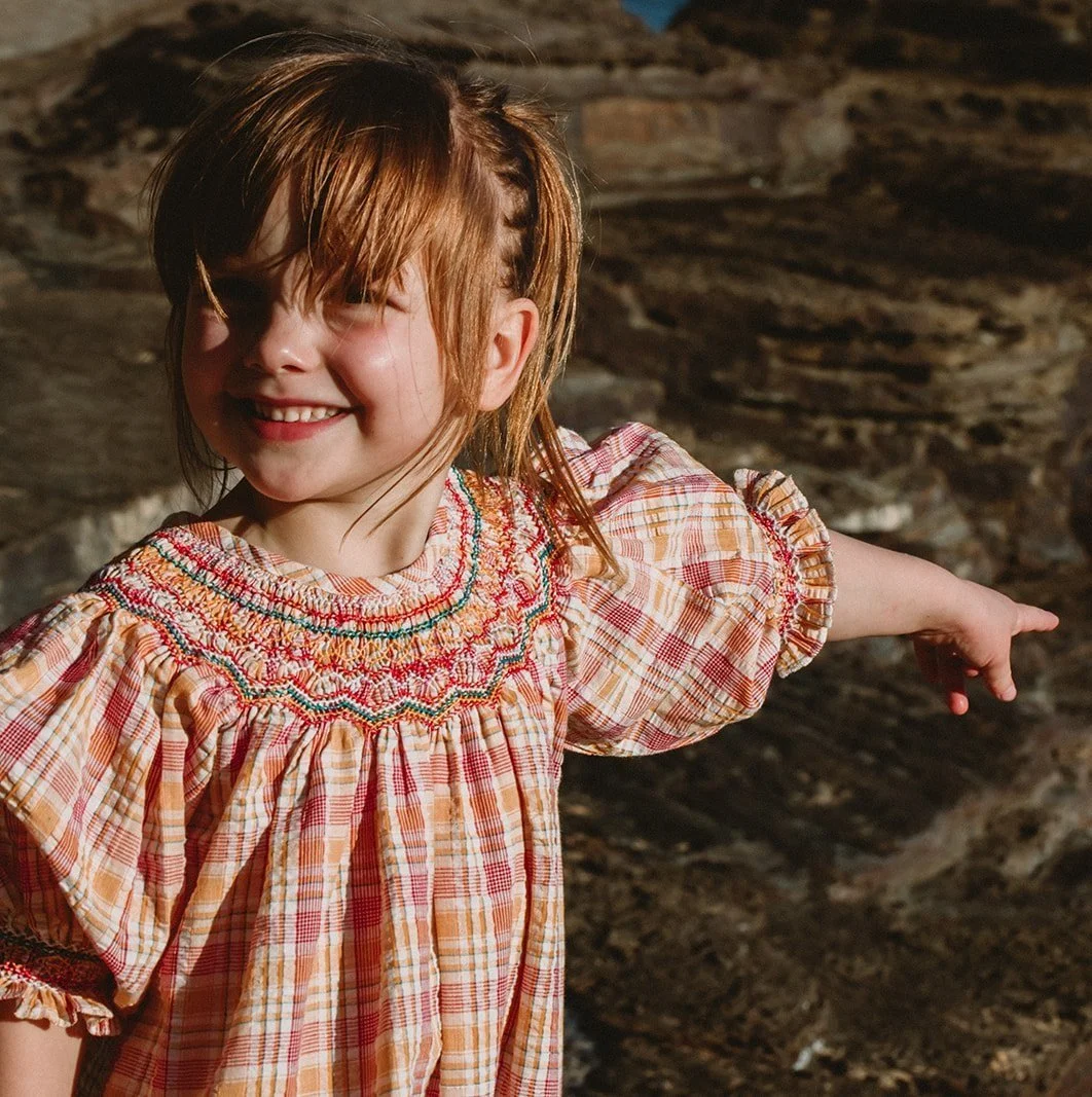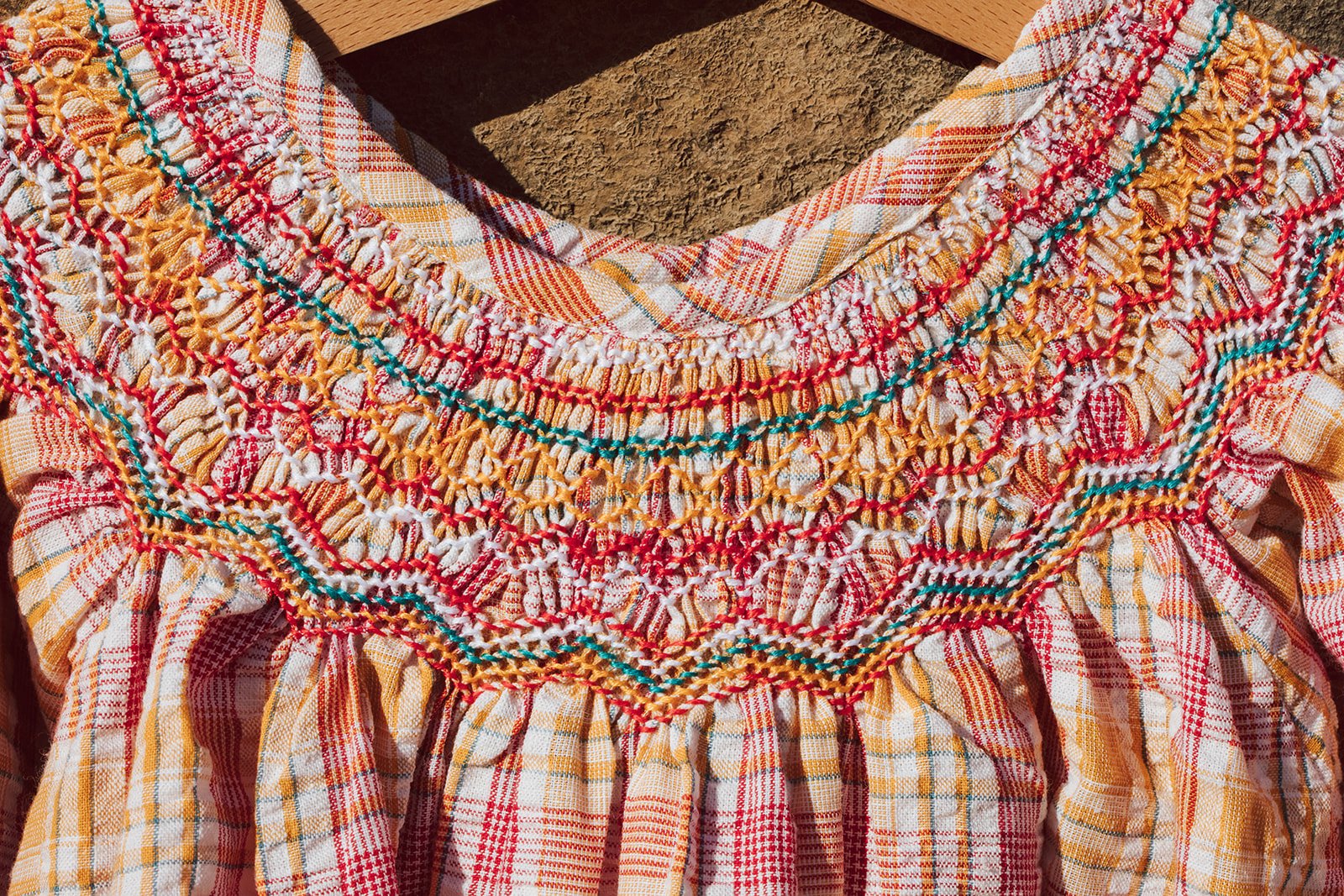 Chest measurements are made from armpit to armpit. Length measurements are made from shoulder to hemline. The handmade nature of our dresses means the measurements will be subject to a tolerance of approx +/- 1cm. Smocking in itself is an inexact artform, and also provides an elasticity to the dress’ fit.