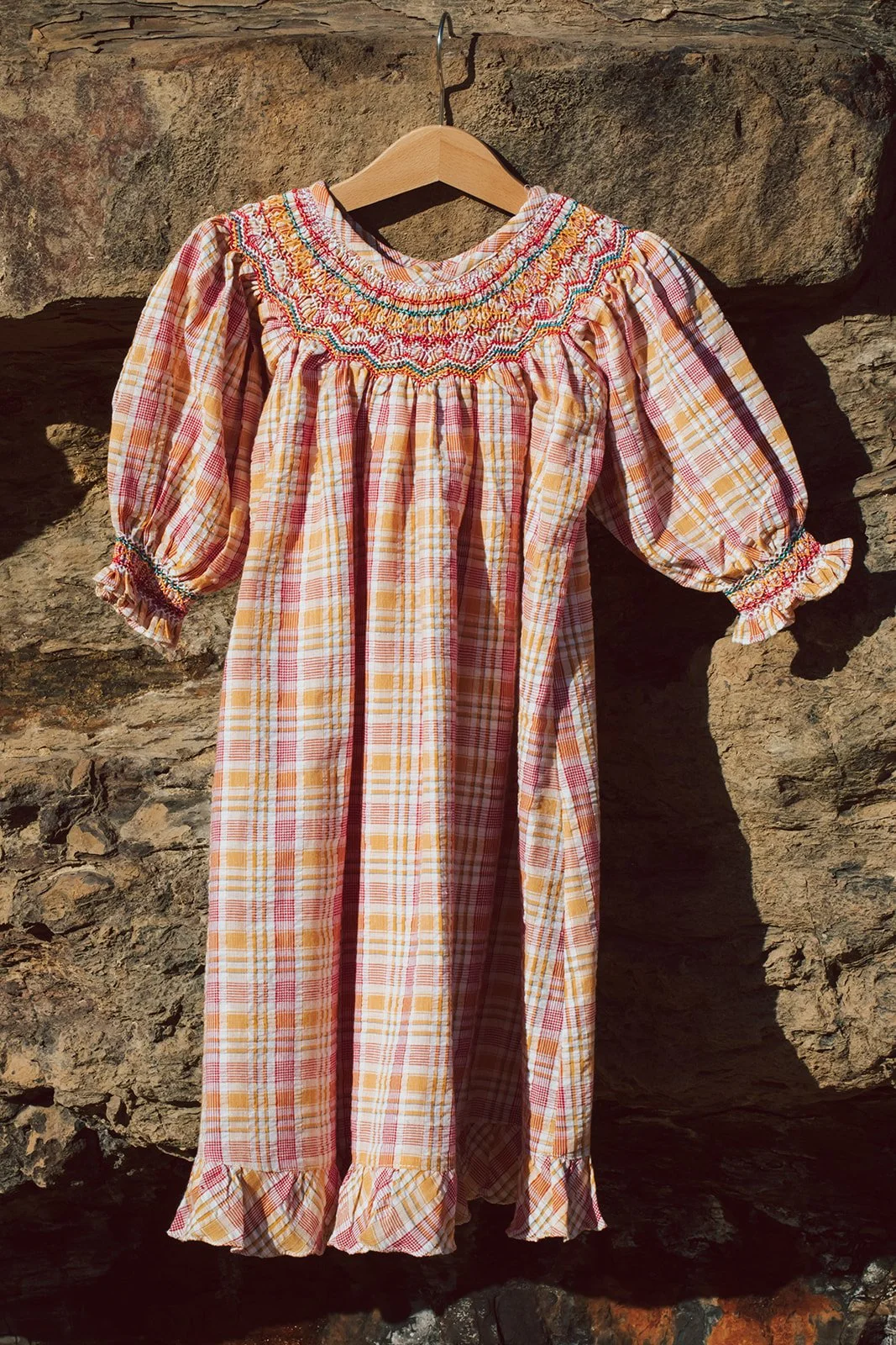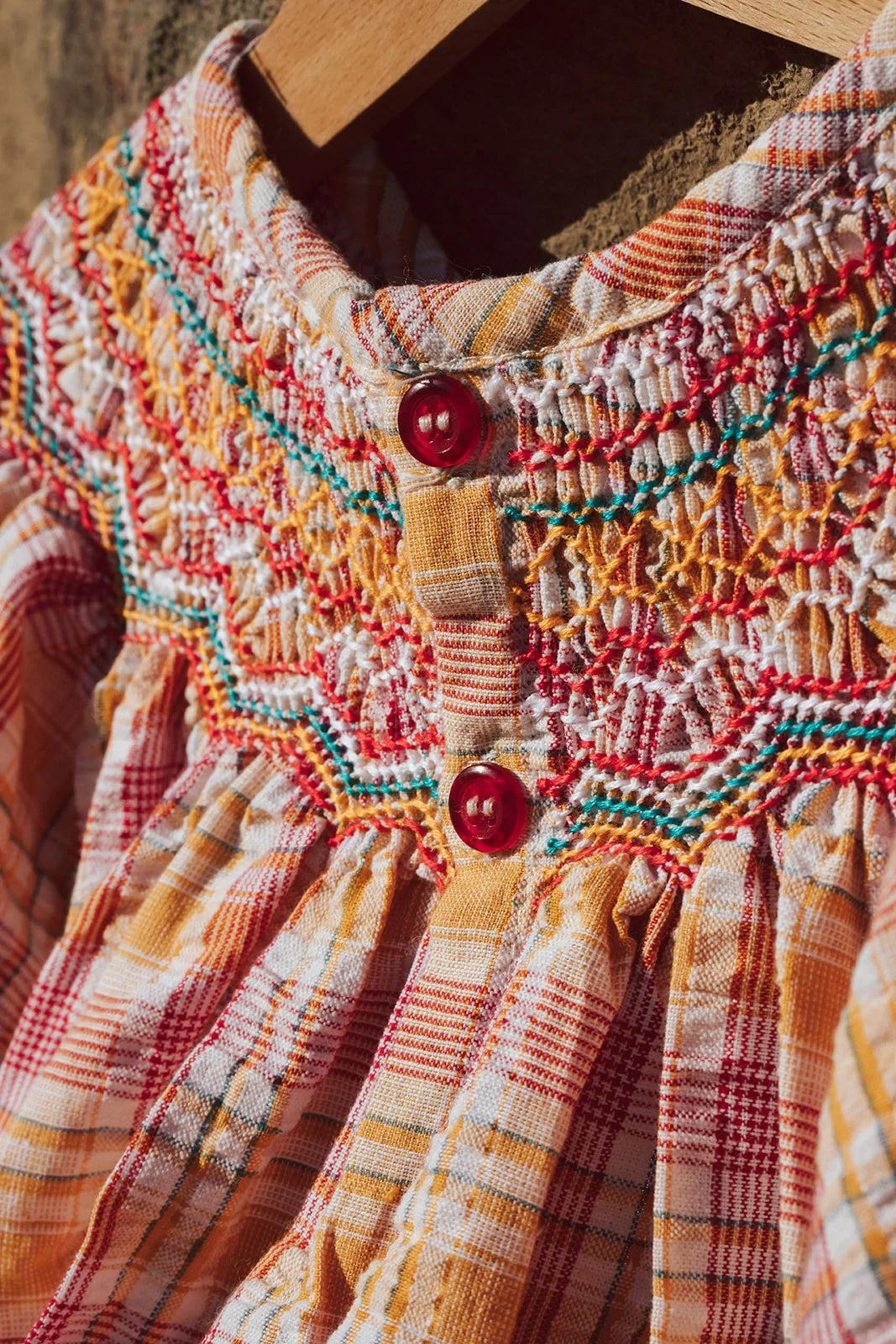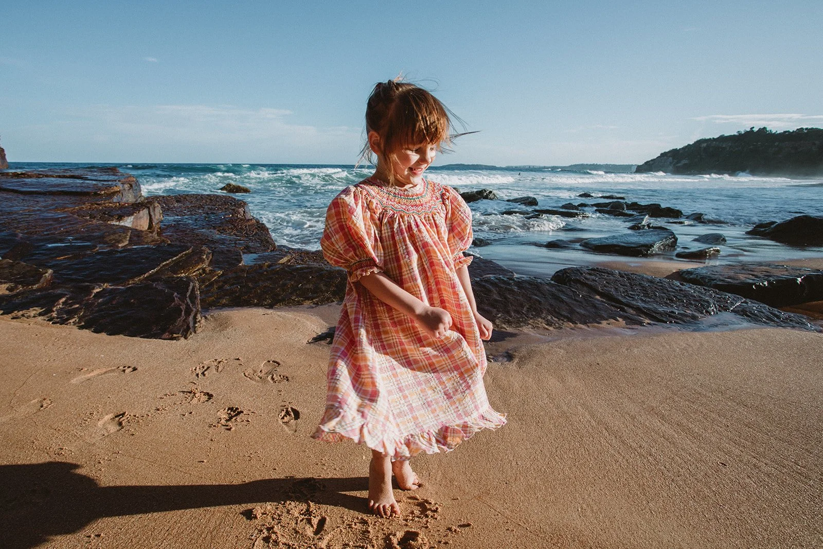 Chest measurements are made from armpit to armpit. Length measurements are made from shoulder to hemline. The handmade nature of our dresses means the measurements will be subject to a tolerance of approx +/- 1cm. Smocking in itself is an inexact artform, and also provides an elasticity to the dress’ fit.