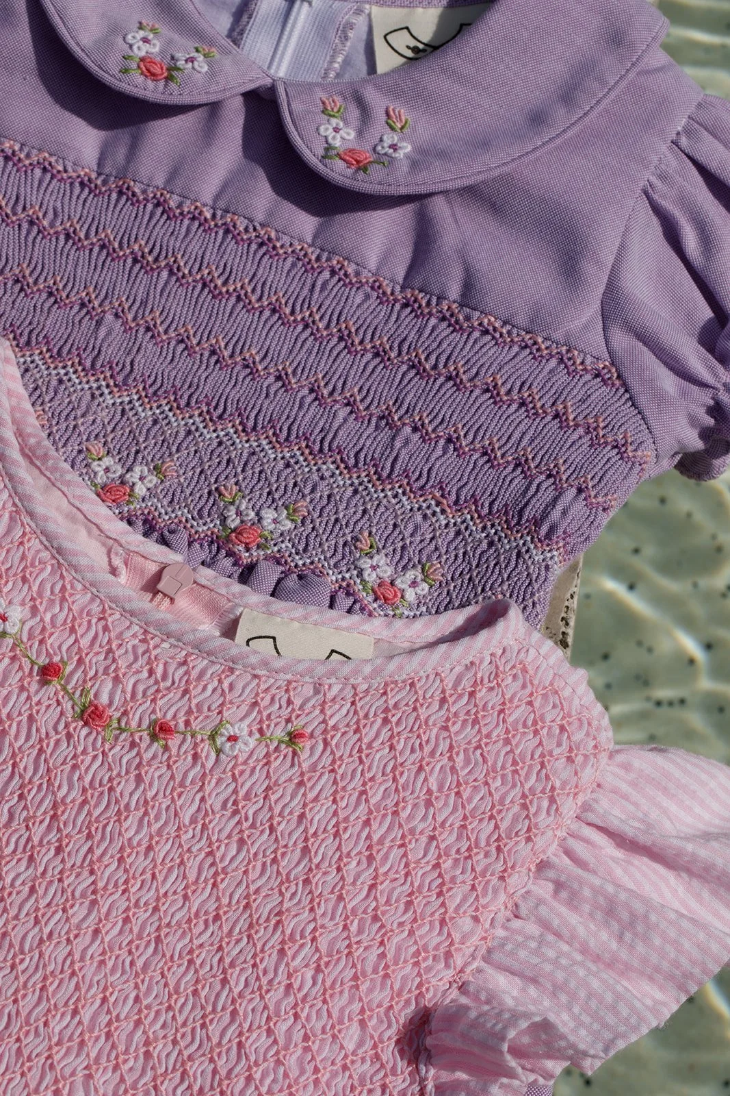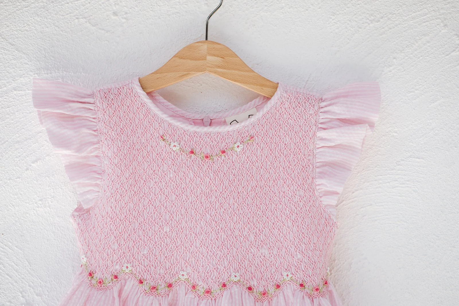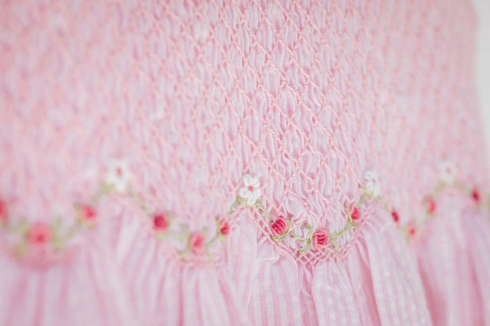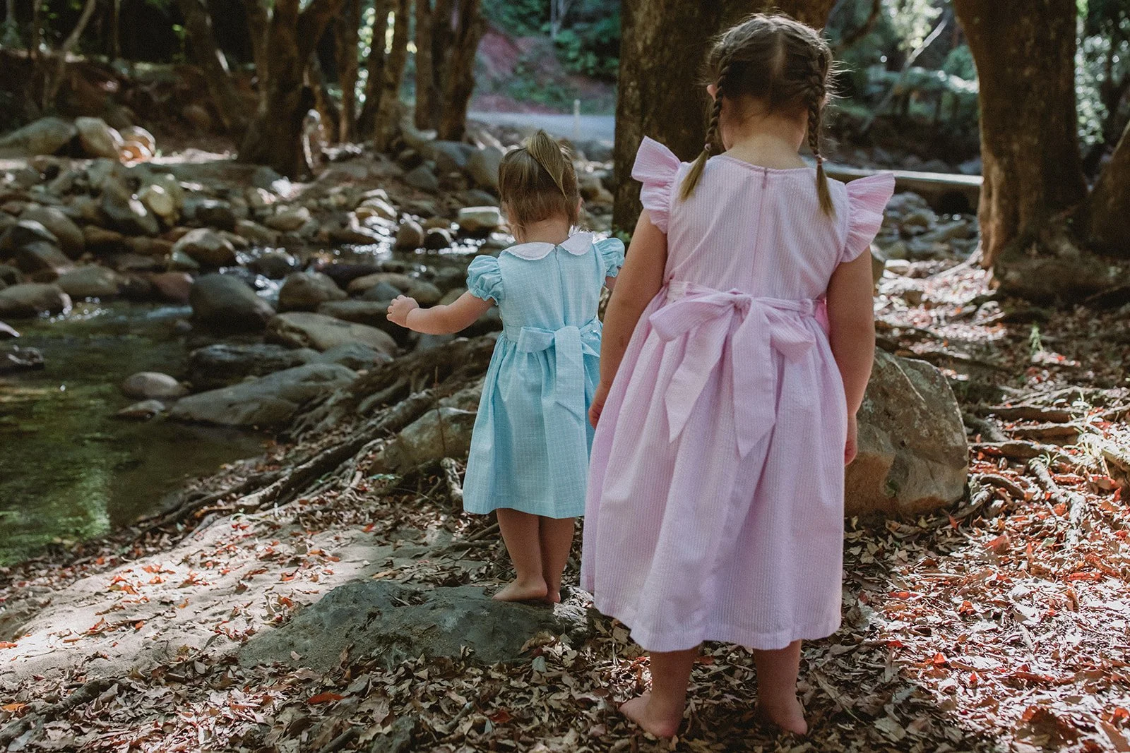 Chest measurements are made from armpit to armpit. Length measurements are made from shoulder to hemline. The handmade nature of our dresses means the measurements will be subject to a tolerance of approx +/- 1cm. Smocking in itself is an inexact artform, and also provides an elasticity to the dress’ fit.