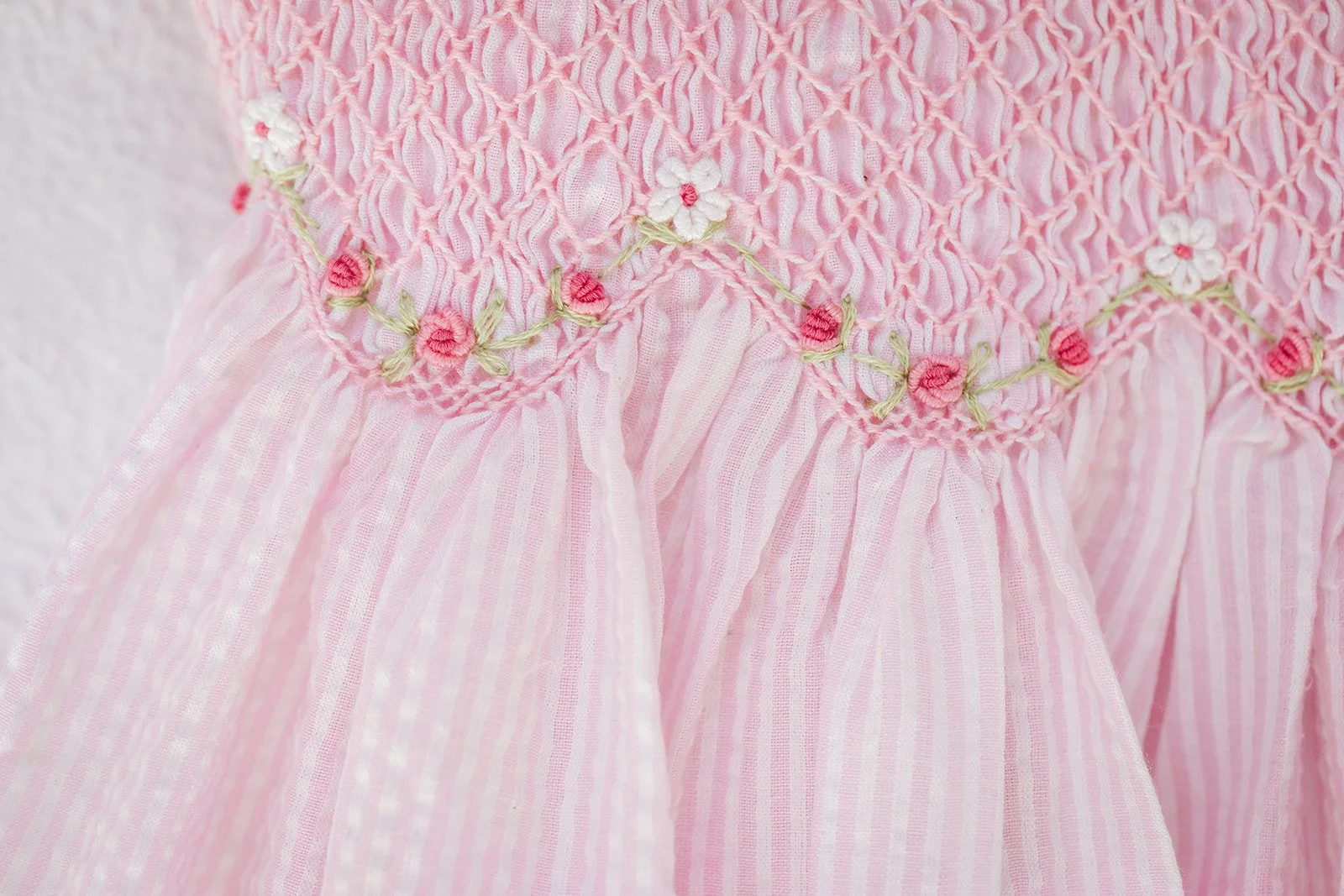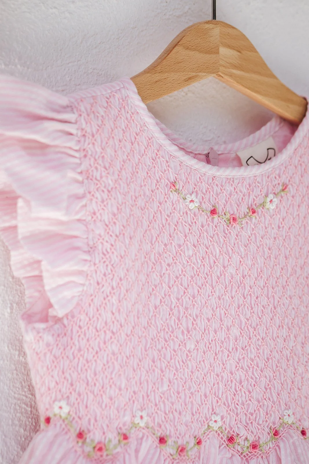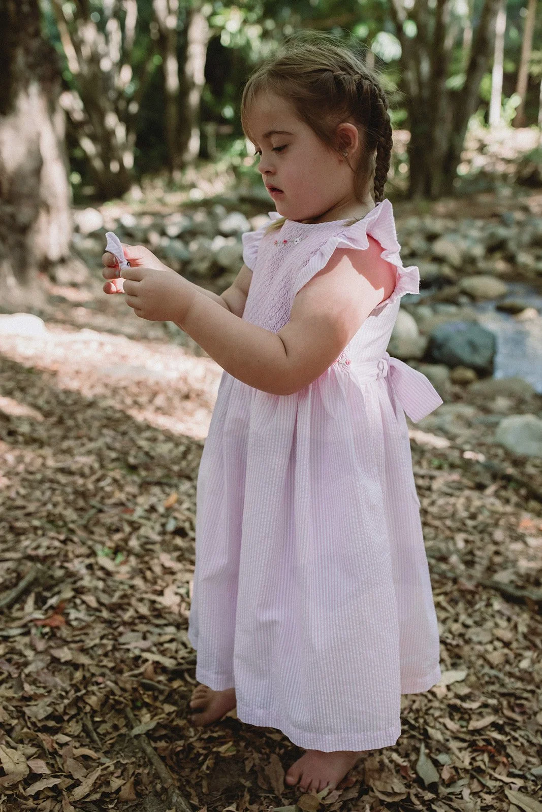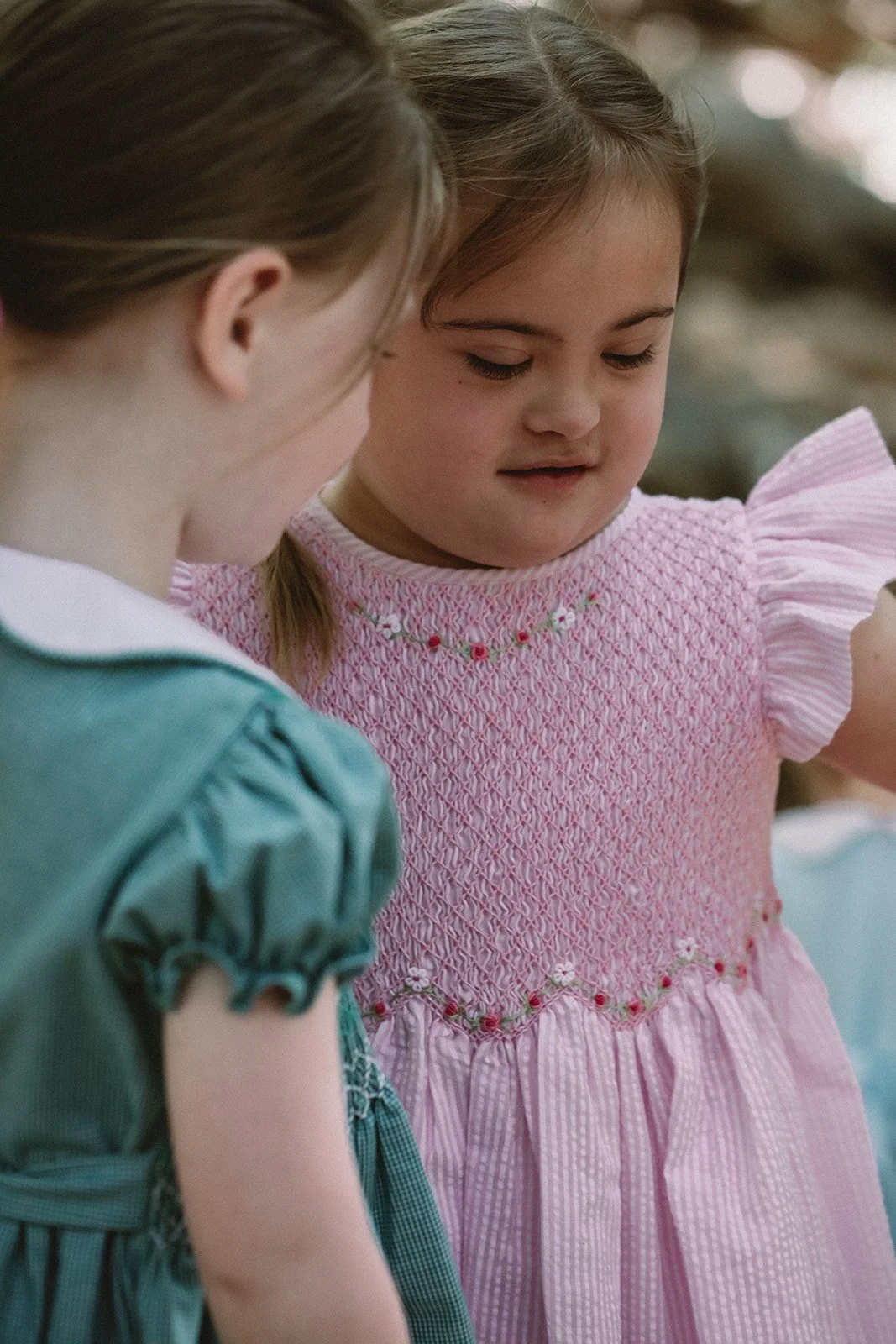 Chest measurements are made from armpit to armpit. Length measurements are made from shoulder to hemline. The handmade nature of our dresses means the measurements will be subject to a tolerance of approx +/- 1cm. Smocking in itself is an inexact artform, and also provides an elasticity to the dress’ fit.