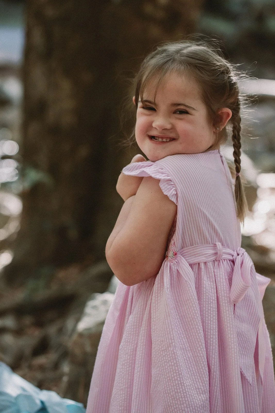 The dresses are ready to be given as gifts, with a complimentary matching bow for her hair and packaged in a matching drawstring bag.