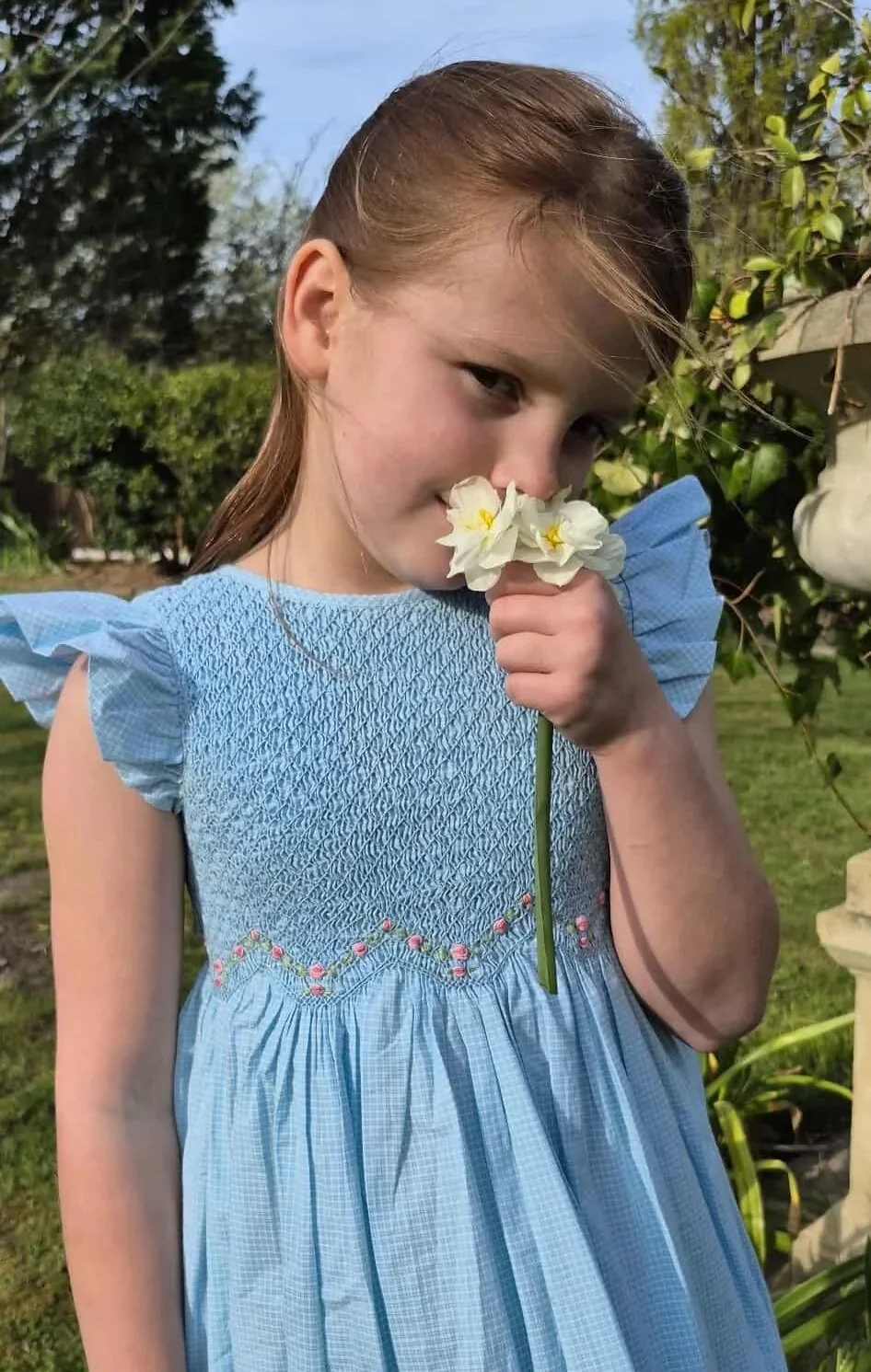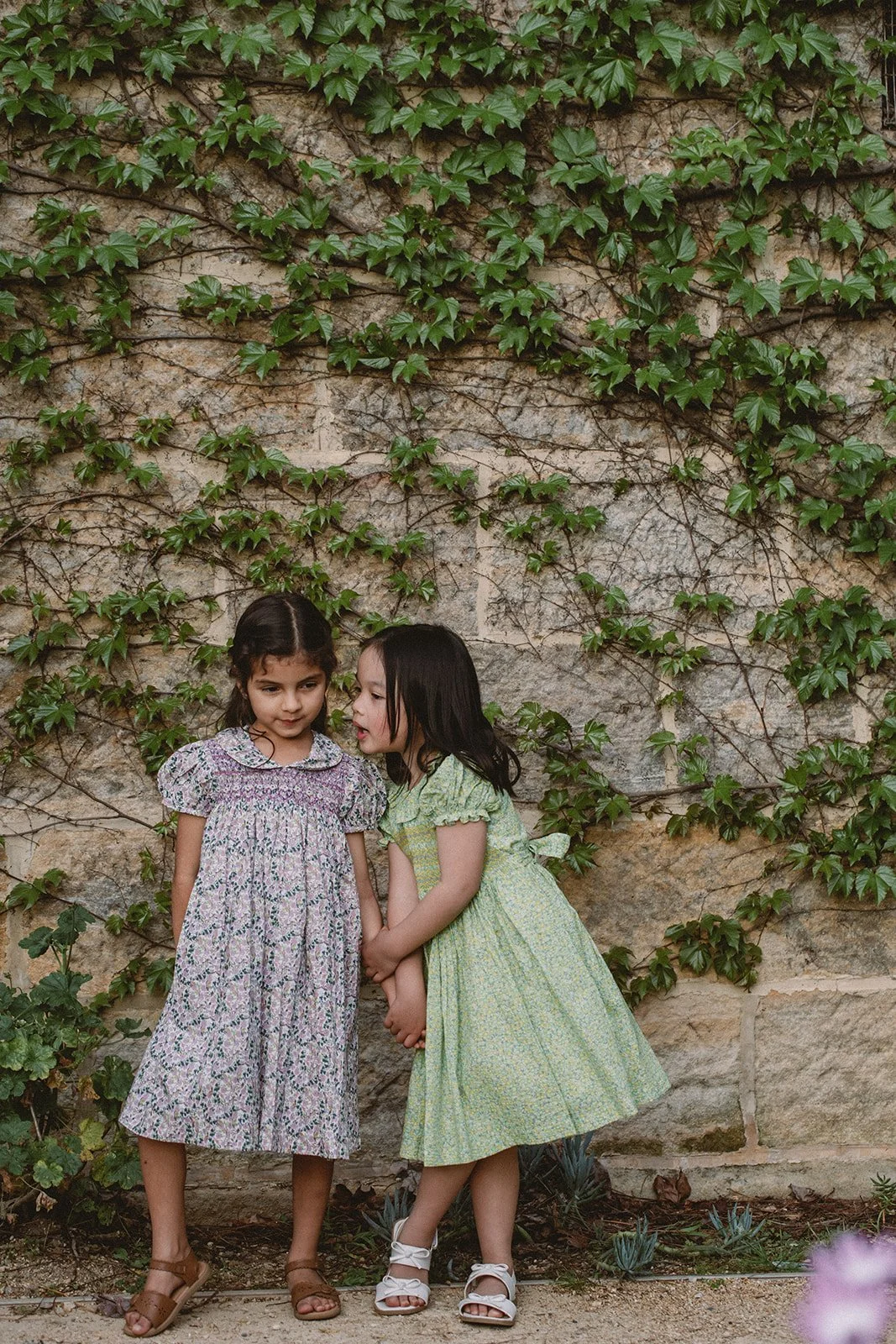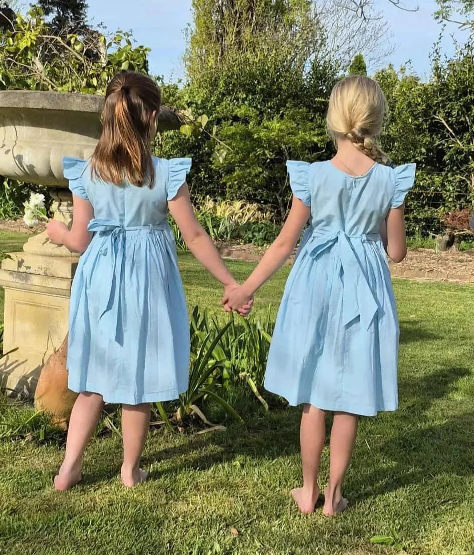 Chest measurements are made from armpit to armpit. Length measurements are made from shoulder to gusset. The handmade nature of our dresses means the measurements will be subject to a tolerance of approx +/- 1cm. Smocking in itself is an inexact artform, and also provides an elasticity to the dress’ fit.
