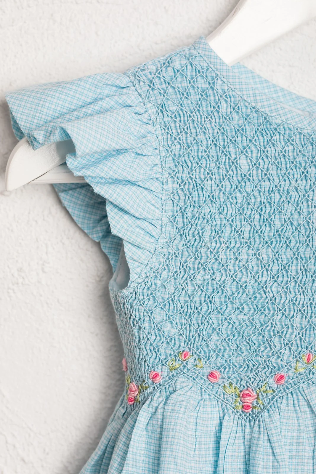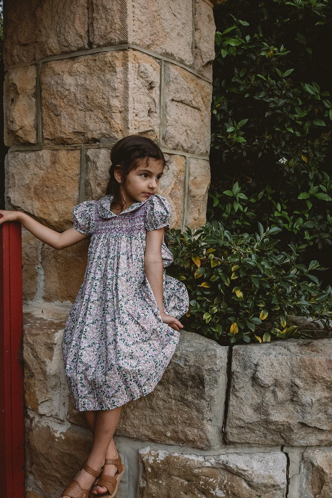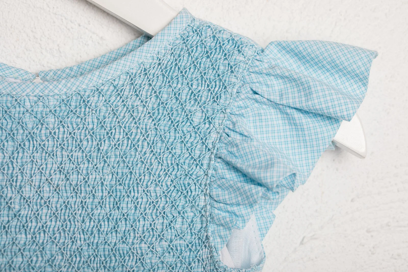 Chest measurements are made from armpit to armpit. Length measurements are made from shoulder to gusset. The handmade nature of our dresses means the measurements will be subject to a tolerance of approx +/- 1cm. Smocking in itself is an inexact artform, and also provides an elasticity to the dress’ fit.